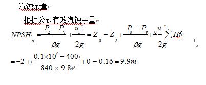 泵進出口管路上管件的當量長度經查手冊得,le1=3m, le2=30m;
